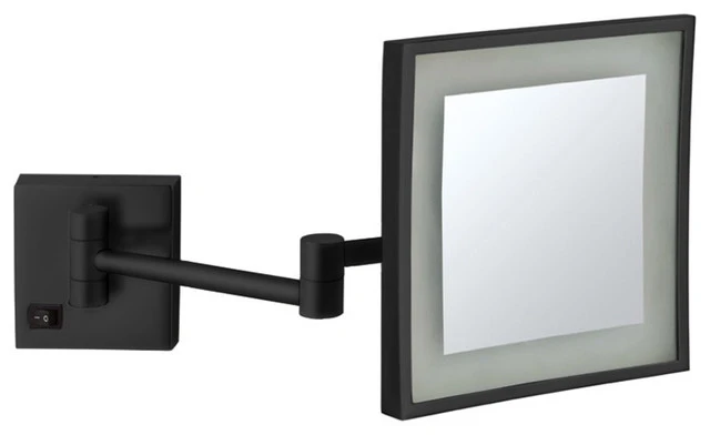 This wall mounted makeup mirror is crafted out of high quality brass and comes with a gorgeous matte black finish. Its 5x magnification face comes in a trendy square shape and mounted onto a double extendable arm. This model also comes with incredibly useful built-in LED lights, and the whole package is the perfect fit for your contemporary bathroom.