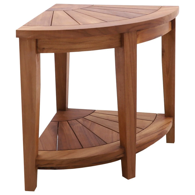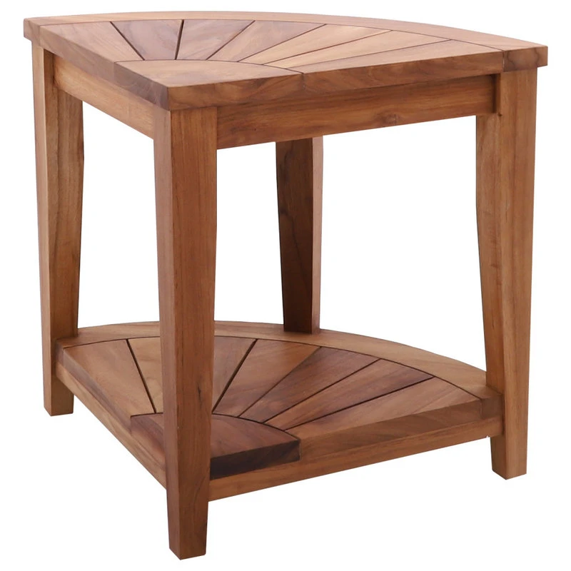 This solid teak corner stool is the perfect addition to your functional décor collection. Teak wood is easy to clean, sturdy, durable and comfortable. The supportive stool allows you to comfortably place or take a moment of rest, lay your towels, shampoos, grooming supplies and just about everything in between (weight capacity is roughly 250lbs). If you happen to run out of space up top, utilize the lower storage shelf.