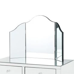 - ELEGANT DESIGN – Designed & expertly crafted high quality mirrored glass – featuring scalloped top & trifold wing design