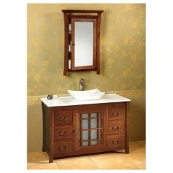 Maykke Sachi 25″x39″ Wood Framed Medicine Cabinetith Mirror And Shelf, Natural Cherry