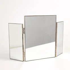 Global Views Glam Silver Frame Folding Vanity Mirror Table Top Triple Double Side Portable