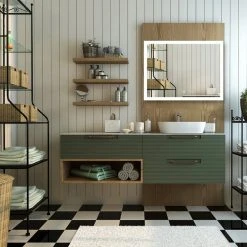 Kiva Rhyme LED Bathroom Backlit Mirror With Dimmer Defogger, 48″x36″-1 Button