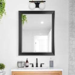Head West, Inc. Head West Black Framed Rectangle Decorative Beveled Edge Wall Mirror – 26″ X 32″