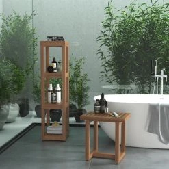 Ecodecors Earthyteak Corner Teak Shower Stools Or Shelf, 16″x15″x18″