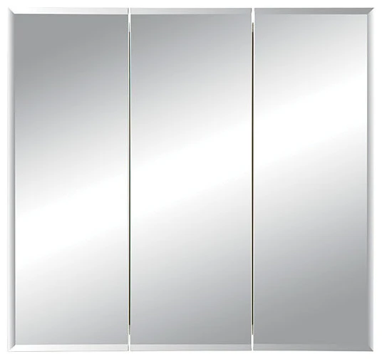 - Frameless mirror doors – 3/16in thick float glass mirrors with 1/2in beveled edges, around perimeter of 3 assembled mirrors – 10in wide mirror doors (3 typical) – 24 gauge steel, pan formed, door back with white, heat cured, acrylic paint finish