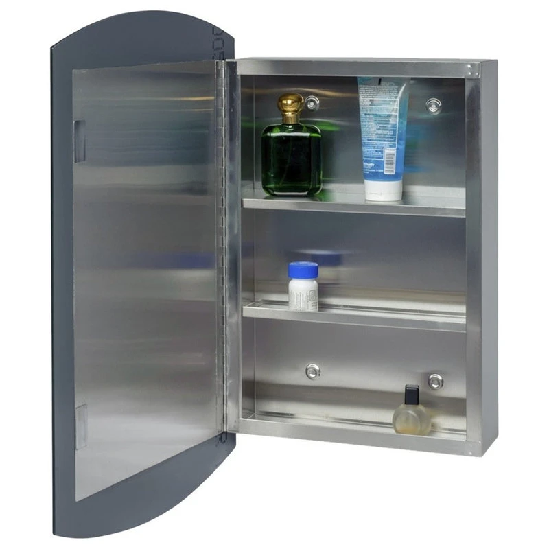 Item 13578 MODERN WALL MOUNT MEDICINE CABINET FOR BATHROOM This elegant medicine cabinet door opens up to three interior shelves. It is manufactured out of 100% superior stainless steel material inside out. It is perfect for organizing daily medications, supplements, first aid supplies, bathroom toiletries, towels, or makeup items. It can be mounted on any plane surface or wall – Opens from RIGHT or LEFT!