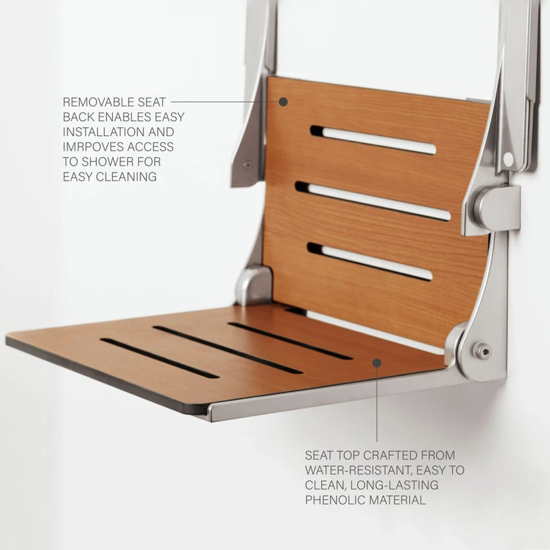 The Silhouette Comfort Shower Seat seat brings a minimalistic design into the shower space with independent folding arms that provide stability, safety and comfort when getting into or out of the Silhouette Seat. Made from durable, water-resistant phenolic material and powder coated cast aluminum frame. Installation Seachrome recommends the seat to be installed into a 2″ in-wall wood backing, and at times is best installed by a handyman or professional contractor. Mounting points have been spaced to be able to go directly into wood studs spaced 16″ apart. The tape is aerospace grade adhesive. Lifestyle & Wellness Series Combining safety, comfort and style, our Lifestyle & Wellness series meets the highest standards in its class. The Lifestyle & Wellness Series integrates our decades of experience in providing stable and secure structural options in a bathroom environment proven to create confidence, self-reliance and peace of mind for the elderly and physically impaired. Underlying the fluid lines and elegant simplicity is our commitment to functional support, durability and intelligent style all in service to health and quality of life. Seachrome products effortlessly blend safety, security and comfort with a versatile range of style options that are equally at home in Aging in Place residential remodels, upscale hospitality properties, or commercial, municipal, healthcare and institutional applications. Whether they are installed in a home or a public restroom, our beautifully designed grab bars and tub, shower and bench seats provide stable and secure structural options that are proven to create confidence and self-reliance for the elderly and physically impaired. Our pride in American craftsmanship combined with over 50 years of manufacturing expertise assures safety, security and innovative design.