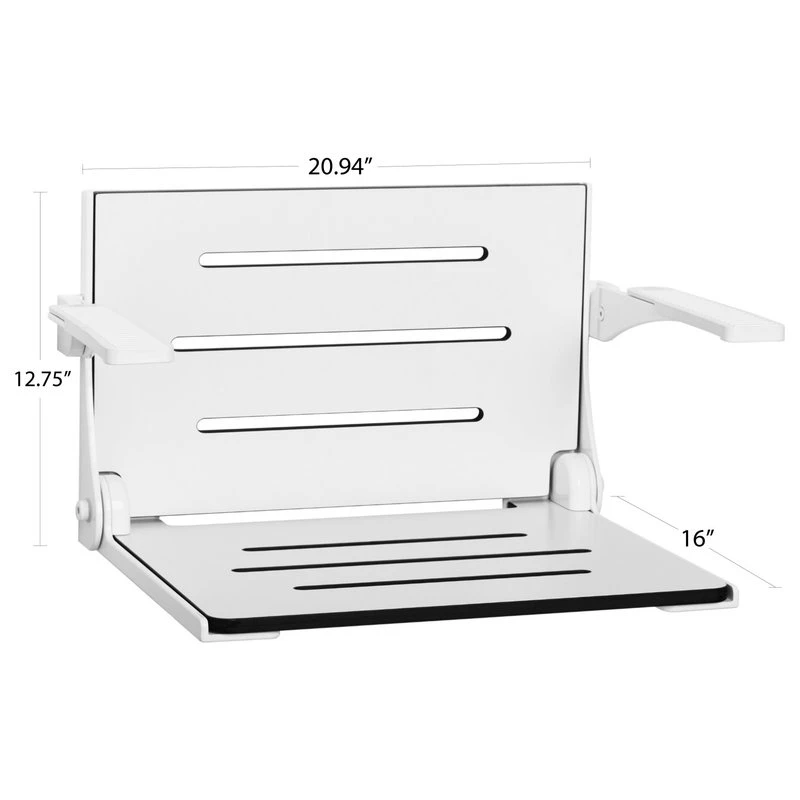 The Silhouette Comfort Shower Seat seat brings a minimalistic design into the shower space with independent folding arms that provide stability, safety and comfort when getting into or out of the Silhouette Seat. Made from durable, water-resistant phenolic material and powder coated cast aluminum frame. Installation Seachrome recommends the seat to be installed into a 2″ in-wall wood backing, and at times is best installed by a handyman or professional contractor. Mounting points have been spaced to be able to go directly into wood studs spaced 16″ apart. The tape is aerospace grade adhesive. Lifestyle & Wellness Series Combining safety, comfort and style, our Lifestyle & Wellness series meets the highest standards in its class. The Lifestyle & Wellness Series integrates our decades of experience in providing stable and secure structural options in a bathroom environment proven to create confidence, self-reliance and peace of mind for the elderly and physically impaired. Underlying the fluid lines and elegant simplicity is our commitment to functional support, durability and intelligent style all in service to health and quality of life. Seachrome products effortlessly blend safety, security and comfort with a versatile range of style options that are equally at home in Aging in Place residential remodels, upscale hospitality properties, or commercial, municipal, healthcare and institutional applications. Whether they are installed in a home or a public restroom, our beautifully designed grab bars and tub, shower and bench seats provide stable and secure structural options that are proven to create confidence and self-reliance for the elderly and physically impaired. Our pride in American craftsmanship combined with over 50 years of manufacturing expertise assures safety, security and innovative design.