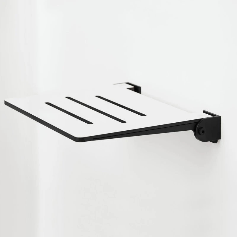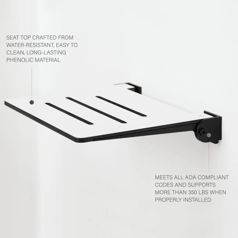 Seachrome Corporation Seachrome SlimLine Folding Wall Mount Shower Seat, White With Matte Black