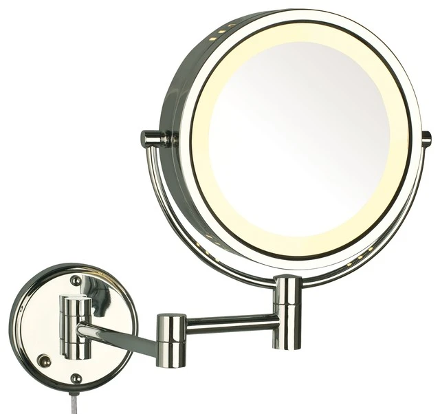SEE ALL INDUSTRIES Modern Chrome Wall Mounted Lighted Make Up Mirror, Corded Plug-In