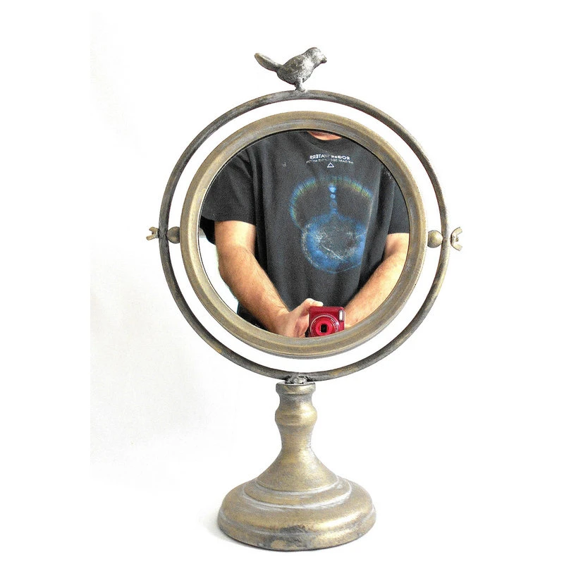 Skanly Tilting Metal Mirror On Stand With Bird Finial, Vanity/ Tabletop Mirror