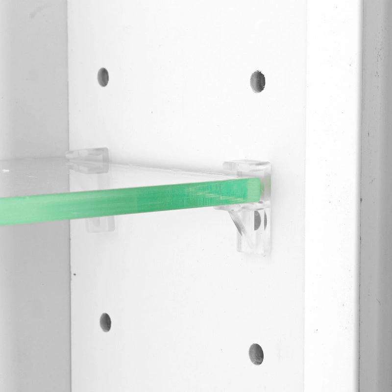 Mounts on the wall with steel mounting brackets inside for an easy installation. With two mounting methods, there is no need to worry about where the studs are in the wall. Three fully adjustable glass shelves slide into our patented shelf supports so they don’t tip or rock. The raised panel door sits on concealed hinges with soft close feature, door is reversible so you can mount it to open either direction. Perfect as a medicine cabinet, spice cabinet, or storage cabinet anywhere. OVERALL Measurements are 25.5h x 15.5w x 5.25″d OVERALL. You’ll have nearly 4.5″ of depth INSIDE the cabinet. Unfinished bare wood can be painted or stained as desired. Solid pine cabinet box with solid maple door. Proudly made in Sarasota, FL.