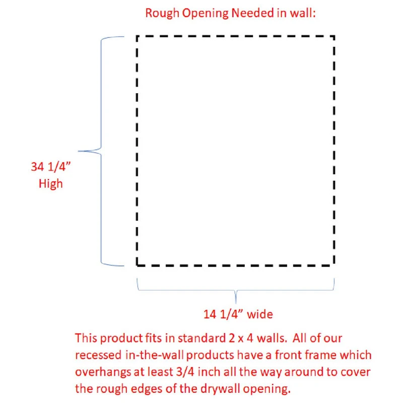 Perfect for any bathroom. Recesses in the wall between the studs, and simply screws to the studs on each side of the opening. Only the door is outside the wall. Fully adjustable glass shelves inside. Our unique, patented design of shelf supports keeps each shelf in place. Concealed hinges with soft close built in assures the door will never slam shut, but softly close on its own instead. Box is SOLID pine and the Double Villa Bead panel style door is SOLID maple. We’ve painted the inside of the box white, so you don’t have to! Unfinished door can be painted or stained. The box is 3.5″ deep inside and gives you plenty of usable depth, but fits in standard 2×4 walls. Cabinet box is 12.5″ wide inside. Door is reversible to open either Left or Right. Completely assembled! All you need to do is put one screw in each hinge to mount the door. Then insert it in the wall and screw it to the studs with included screws. If you are replacing a current cabinet, measure your wall opening! White plastic trim surround covers the rough edges of your opening up to 1/2″ all around. Door covers the trim surround when closed so the only thing you see outside the wall is the door itself. Made in Sarasota, FL.