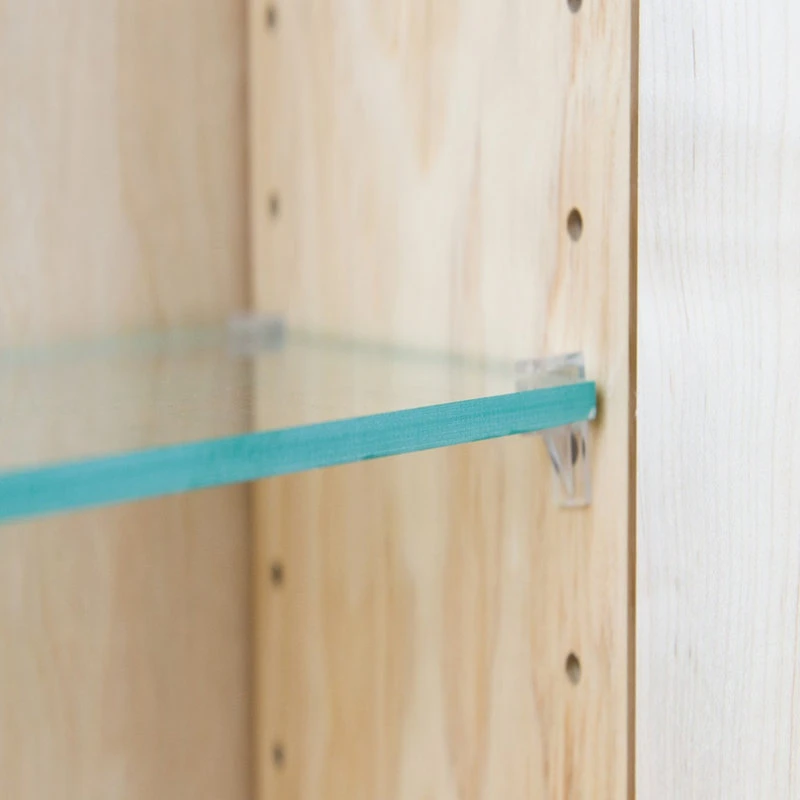 Mounts on the wall with steel mounting brackets inside for an easy installation. With two mounting methods, there is no need to worry about where the studs are in the wall. Three fully adjustable glass shelves slide into our patented shelf supports so they don’t tip or rock. Shaker style panel door sits on concealed hinges with soft close feature, door is reversible so you can mount it to open either direction. Perfect as a medicine cabinet, spice cabinet, or storage cabinet anywhere. OVERALL Measurements are 25.5h x 15.25w x 3.25″d OVERALL. You’ll have nearly 2.5″ of depth INSIDE the cabinet. Unfinished bare wood can be painted or stained as desired. Solid pine cabinet box with solid maple door. Proudly made in the USA.