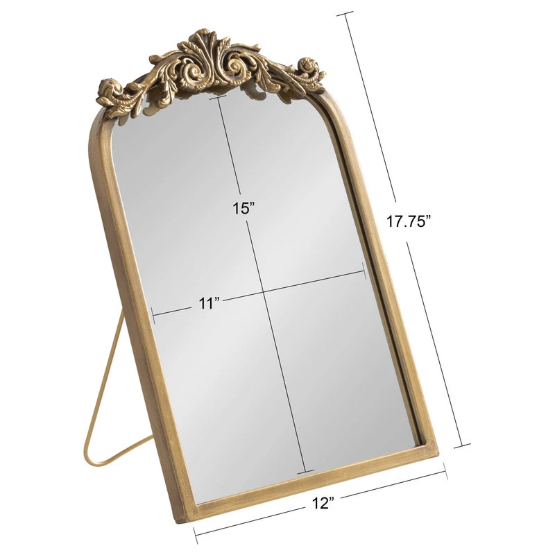 Take your home back to a time when artisanal craftsmanship breathed sophisticated life into every corner of the home with this decorative table mirror. The Arendahl tabletop mirror brings a charming antique aesthetic to your accent tables. It features an ornate, Baroque-inspired garland crown that cascades into an elegantly arched frame. Due to its hand-finished craftsmanship, each piece may vary in appearance. This frame is made from a beautiful iron material, making it resilient and high-quality. The advantage of this tabletop wall mirror comes from its versatile design: Use the attached easel to make it a focal point on your console, vanity, or side table, or use it for a show-stopping centerpiece at your next event. If you’d rather have a beautiful, ornate wall display with the Arendahl mirror, it also comes with sawtooth hangers attached to the back, allowing you to hang it on your wall in only a matter of seconds. This mirror’s overall dimensions are 12 inches wide by 18 inches tall, making it a bold statement for any surface of your home.