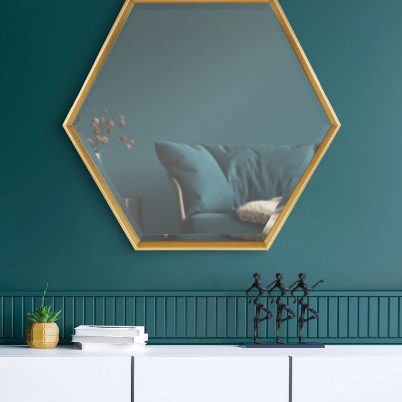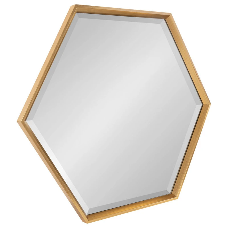 Go above and beyond the standard wall mirror with a mirror that utilizes clean, minimal geometry. The Calter wall mirror offers your home a bold accent piece that makes any space more dimensional and vibrant. It features a sophisticated yet simple design, with a sleek, hexagon shape that makes an instant impression, with a beautiful gold finish that blends into any decorative aesthetic. Adding a mirror to your wall brings more light to your space, making it appear dimensional and spacious. The Calter wall mirror also has a sleek, beveled edge, which draws in even more light to make your space feel cozy yet bright. This mirror’s overall dimensions are 30 inches by 34 inches, creating a dynamic and decorative focal point to wow everyone who enters your charming, modern home. It looks fantastic as a decorative accent or as a functional bathroom vanity mirror above your sink. It looks great in any living room, bedroom, entryway, or dining room as well. This hexagon wall mirror hangs vertically or horizontally in seconds with the convenient metal D-ring hangers attached to the back.