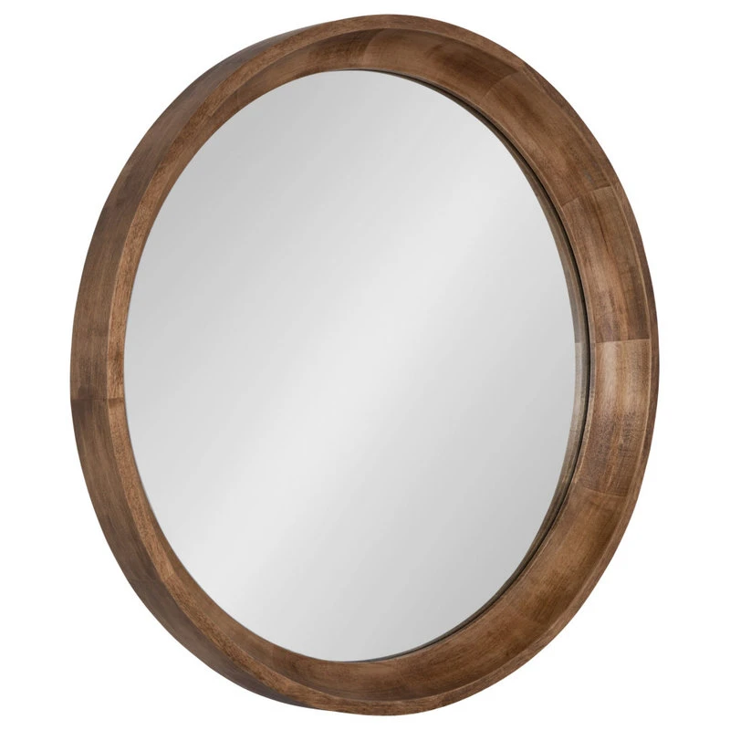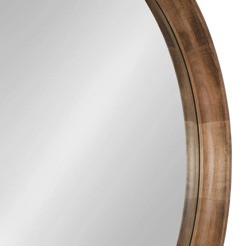 Add a piece of rustic or boho wall decor to your home with this incredible round wall mirror by Kate and Laurel. Designed to blend both rustic and modern decor aesthetics, this mirror decor features a frame with solid wood construction and a chic, contemporary round shape. The frame also features a scooped profile for an eye-catching, unique form. The Colfax Mirror has a 22″ diameter, capable of being displayed on its own or in multiples for a sophisticated, symmetrical wall display. It also features a natural finish for a rustic, yet transitional look, capable of blending into any boho or farmhouse-inspired living room, bedroom, entryway, or dining room. If you’re looking for any bathroom mirrors for wall decor, it also makes an elegant accent to hang in a bathroom above a powder room sink or table. Adding a mirror to your living space not only provides a decorative wall display but reflects and spreads light throughout your home to expand and add dimension to any room. This mirror is easy to hang with metal D-ring hangers, providing your home with a sophisticated boho mirror in a matter of minutes.