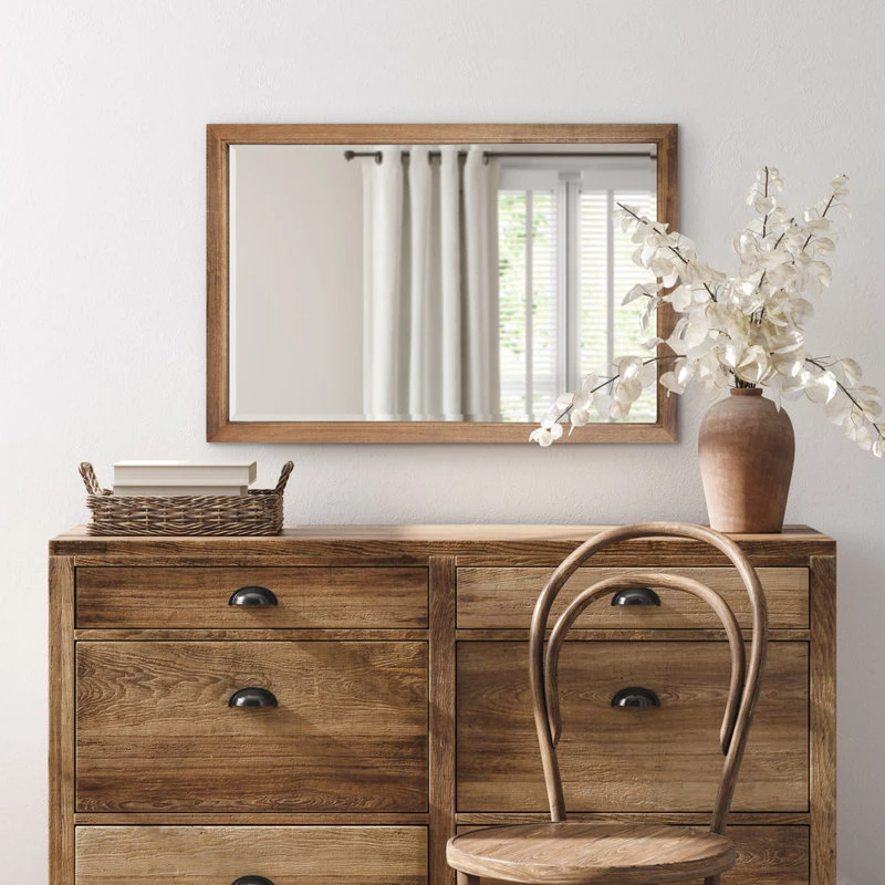- FARMHOUSE STYLE: This beautiful wood mirror features a rustic brown finish and a minimal rectangular shape for the ultimate farmhouse-style focal point