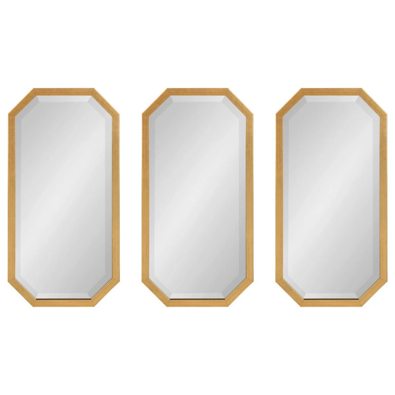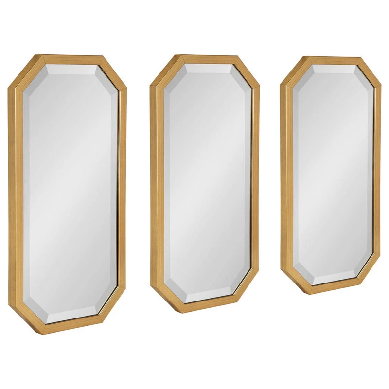 Revive your home’s modern glam decor aesthetic with this beautiful set of geometric mirrors from Kate and Laurel. The Laverty Octagon Mirror Set features a decadent metal frame with an elegant gold finish. Each of the geometric Laverty Mirrors are 24 inches high by 12 inches wide by 1.25 inches deep, making them substantial enough to be showcased on their own or side by side in a unique mirror decor display. If you’d like to create an even more symmetrical decor theme, we suggest purchasing multiple sets for an eye-catching display to floor any guest that walks into your home. Show your new Laverty Mirror set over the mantle or above the couch in the living room, or wow your guests right away by installing them above a console table in your entryway. Regardless of where you decide to hang these beautiful, decorative wall mirrors, they’ll be ready in seconds thanks to metal D-ring hangers securely attached to the back. The metal D-ring hangers are installed on this decorative mirror to allow the capability of both horizontal and vertical installation.