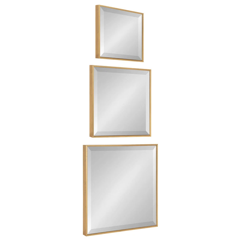 The Rhodes Modern Square Mirror Set makes an impressive addition to any room in your home. With graduated sizes and a brushed gold frame, this set is sure to bring the glam to your modern home decor. Each mirror features a beveled surface for a portrait-like, 3-dimensional quality. This set would look perfect hung in a living room or on a more narrow wall in your home. Display all three as one unit or separate them out in your home for a unified, glam decor aesthetic. These mirrors would look gorgeous in a contemporary-styled living room, bedroom, entryway, kitchen, bathroom, or any other living space that needs a bit of brightening up. The benefit of adding accent mirrors to your home is that they reflect light and illuminate your space, providing the illusion of having a more open environment. Each mirror ships flat with no assembly required, so this set is ready to mount in only a matter of seconds. Mount the Rhodes Modern Square Mirror Set on any wall with their heavy-duty sawtooth hangers.