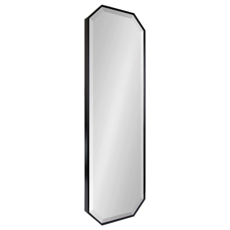 Indulge in the glamorous, minimal aesthetic of the Rhodes wall mirror, a practical wall accent for any room. Inspired by modern, geometric forms, the Rhodes mirror has minimal lines and a lovely octagon shape. The Rhodes surface is constructed with a resilient plastic frame and mirrored glass while offering a beveled edge to spread more light throughout the area. Adding a mirror to your wall expands your space by reflecting light, creating a more dimensional, open concept room. Hang this practical, geometric accent in any modern or glamorous living room, bedroom, entryway, bathroom, closet, or dining room. The overall dimensions of this mirror are 16.75 inches wide by 1.5 inches deep by 48.75 inches tall, showcasing a robust, full-length mirror for checking your appearance, tying your tie, or doing your makeup. Showcase the Rhodes on its own for a bold focal point or in multiples to create a grand wall display. The metal D-ring hangers attached to the back of the frame allow you to hang it both vertically or horizontally, depending on your unique decorative aesthetic.
