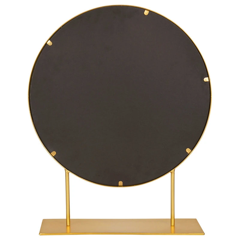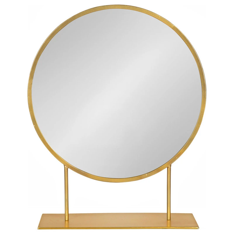 The Rouen mirror will make any desk like surface an instant vanity area for your morning or nighttime regime. Use as an accent for any room, whether you are looking for a mirror for your makeup area, bathroom or powder room, or decor for your dining room, living room, entryway console table or office. The frame and stand is constructed of all metal material and stands 22-inches high with an 18-inch diameter mirror. The base is 6-inches deep.