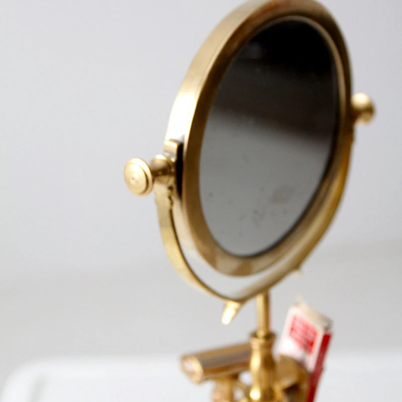 In good with wear consistent with age and use. Glass of mirror shows some age spotting. Gillette razor has some minor fading of the gold tone with normal usage wear.