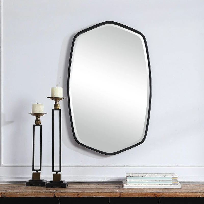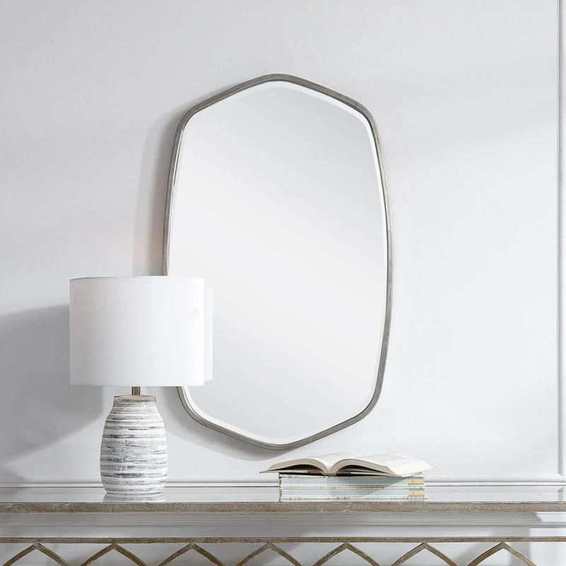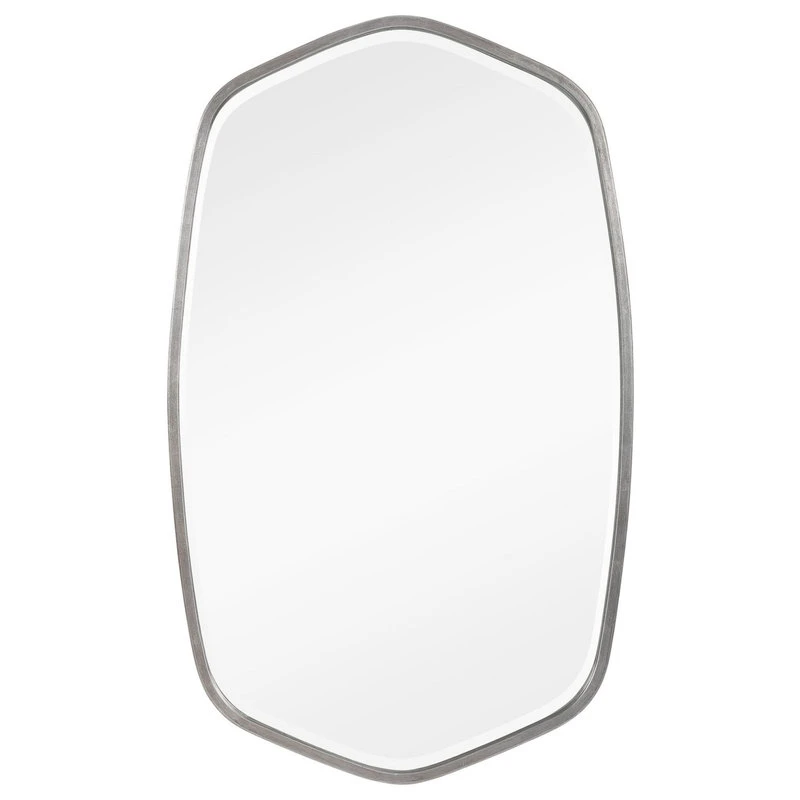 - This hand forged iron mirror frame features a unique shape with elegant curves, finished in a versatile brushed silverUttermost 09699 Features: