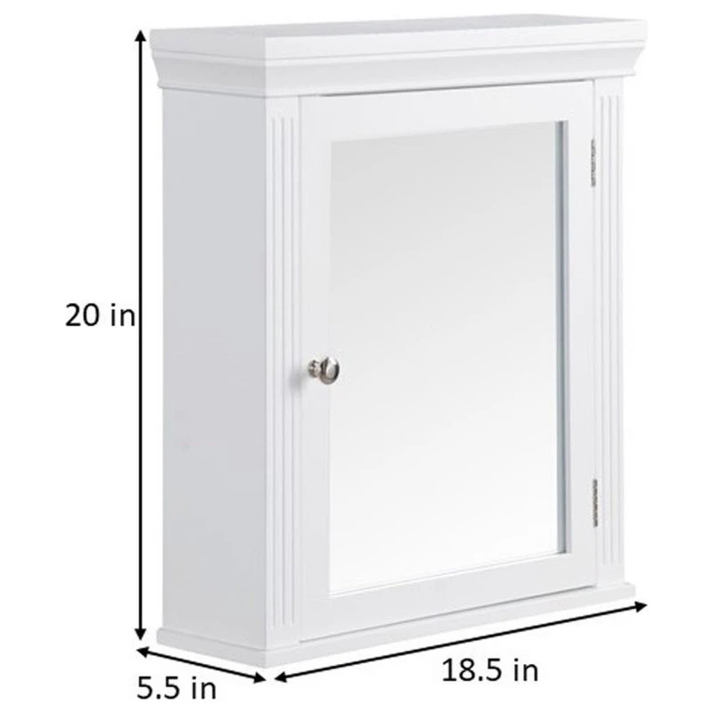 Upgrade your home storage while adding classic decor with the Elegant Home Fashions Chestnut Wooden Medicine Cabinet with Crown Molded Top. This decorative cabinet features a white finish with a crown molded top, a mirror door, double-plated knobs, and stylish columns with 3 grooves for a beautiful addition to your space. The included adjustable shelf helps to reduce clutter and keep your home tidy. Constructed from durable engineered wood, this medicine cabinet is built to provide you with long-lasting organization. Easy, step-by-step instructions and all of the hardware needed are included for quick assembly. Purchase this stylish cabinet alone or with other items from the Chestnut collection for a cohesive, updated look. The Elegant Home Fashions Chestnut Wooden Removable Medicine Cabinet with Crown Molded Top measures 18.5″ x 5.5″ x 20″ to provide removable storage without taking up too much space in your living space.