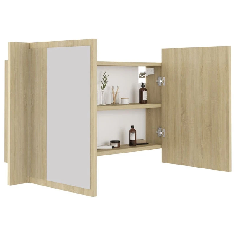 Add a touch of aesthetically pleasing into your bathroom with this LED mirror cabinet, which adds a contemporary style to any room! The bathroom cabinet features an RGB light, so the color of the LED can be changed. The two shelves inside the cabinet offer additional bathroom storage. They will easily accommodate your essential toiletries and bath items such as soaps, shampoo, toothpaste, etc. Additionally, it is easy to clean with a damp cloth. Stylish and functional, this cabinet is surely meant to make your room design authentic and exceptional! Note:The mirror is made of lightweight and quality acrylic material, which is safer and stronger than glass. You need to peel the protective film before using the mirror.The product has a USB connector, but the certified 5V USB power source is not included.