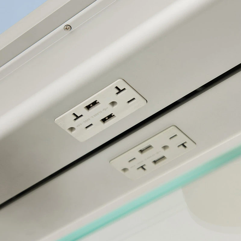 - Mirror panel on both sides, Acrylic inside door for lighting