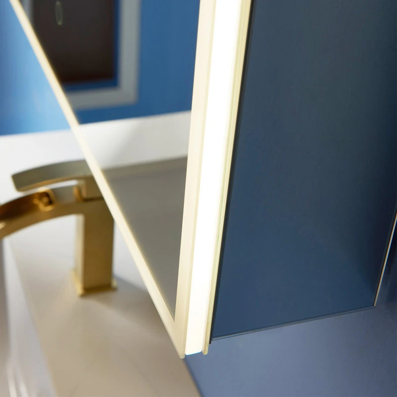 Sleek and refined, the Vinnova Perma Vanity Mirror makes an elegant accent for any bathroom space. Soft, perimeter LED lighting on both the front and back of the door panel provides just the right amount of illumination. The shelves inside offer ample space for all your accoutrements.
