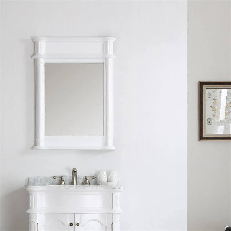 Overflowing with warmth and character, the Vinnova Messina wall mounted wood framed mirror in white embodies Victorian-era magnificence. Wood framed with graceful curves make a bold style statement. It’s perfect for your bathroom vanity, bedroom, powder room, dressing room, or entry way. The rectangle and antique look add a character to your space. It comes with metal inset hangers attached to the back of the mirror.
