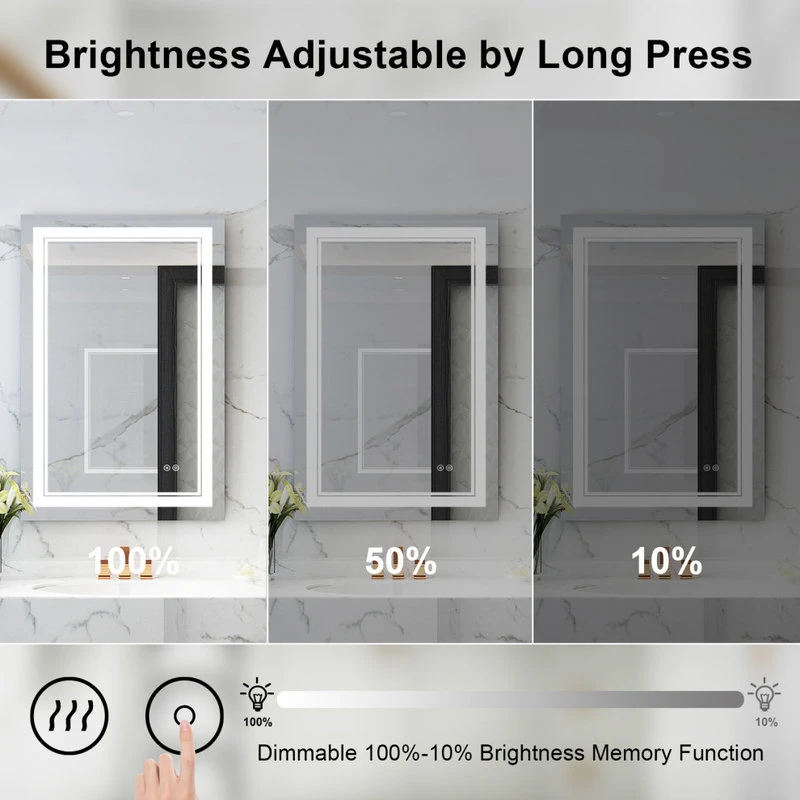 - Dimmable 100%-10% function allow you control the brightness of light. and the brightness and light color state are restored when the mirror is powered off.