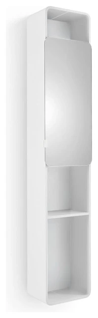 - Single door cabinet opens to reveal additional concealed storage